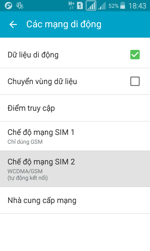 Lúc trước vèo vèo mà có chữ H+ nữa. Giờ ko như vậy gì cả. Ae biết giúp vsbạn vô cài đặt chọn sim đang xài rồi chọn chế độ tự động