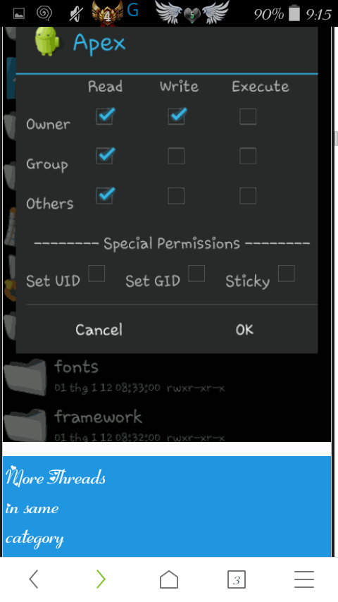 mình chưa dùng. nhưng cách xét quyền 644 là như vậy á bạn. bạn làm thử xem sao? nhớ coppy ra 1 bản để đề phòng nha.Dùng root explorer hả bn