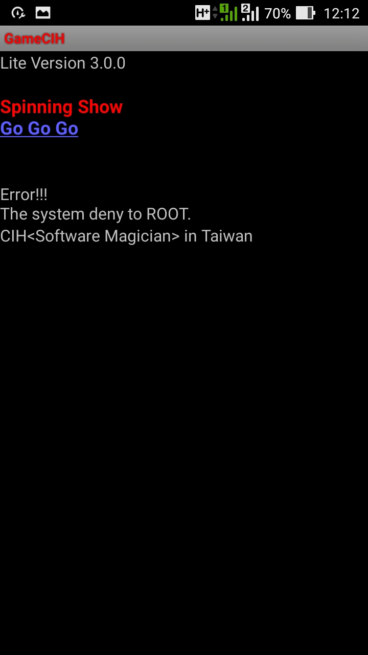 ]Các pro cho mình hỏi, mình đã root máy và đã kiểm tra rôt thành công. Nhưng khi mình dùng các ứng dụng để hack game như game killer hay game hacker thì khoảng 10s là bị thoát mất. Còn những ứng dụng như daxattac hay guadian thì 1s là thoát. Riêng với game cih thì như hình.