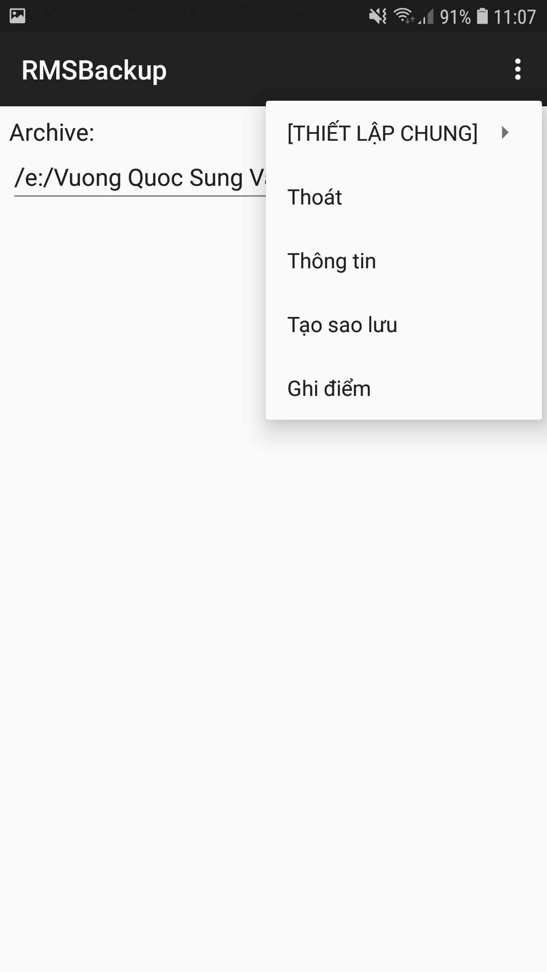 Đã backup file lưu vượt kích hoạt sms
