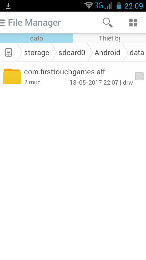 + Data . mở ra sẽ có thư mục com.xxx.xxx bạn chép thư mục này vào Thẻ Nhớ / Android / Data