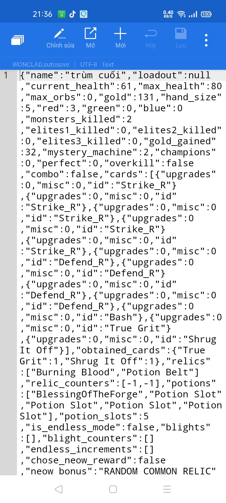lâu quá nên quên chỉnh trực tiếp được trong save android/data