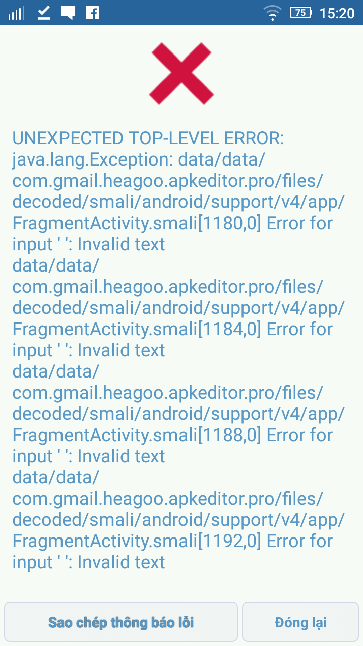 .method protected onCreate(Landroid/os/Bundle;)VCó lẽ bạn chỉnh sai hoặc cái app apk editor kia lỗi