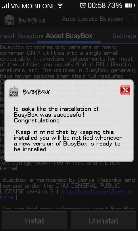 ừ chính nó, vậy là cài thành công rồi mà nhỉ, sao vô dsploit lại báo lỗi chưa cài busy, vô quản lí root xem đã cho 2 cái đó quyền root chưa?