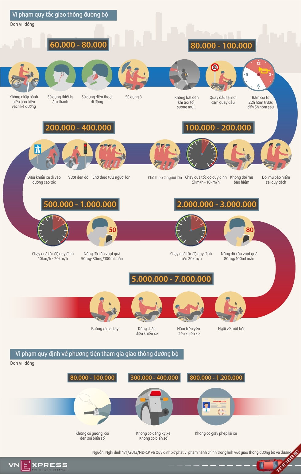 Những mức phạt xe máy khi vi phạm giao thông tại Việt NamDưới đây là một hình ảnh dạng infographic, giới thiệu cho chúng ta biết những mức phạt khi xe máy vi phạm giao thông tại Việt Nam. Các bạn nên đọc để biết được mức phạt mà có thể nói chuyện với CSGT nếu bị phạt quá mức tiền.
