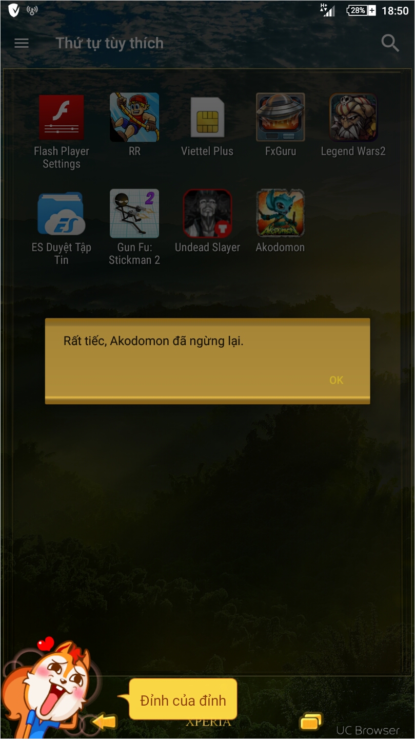 Tải về đc nhưng kô chơi đc. Nó hiện: Rất tiếc akodomon đã dừng lại