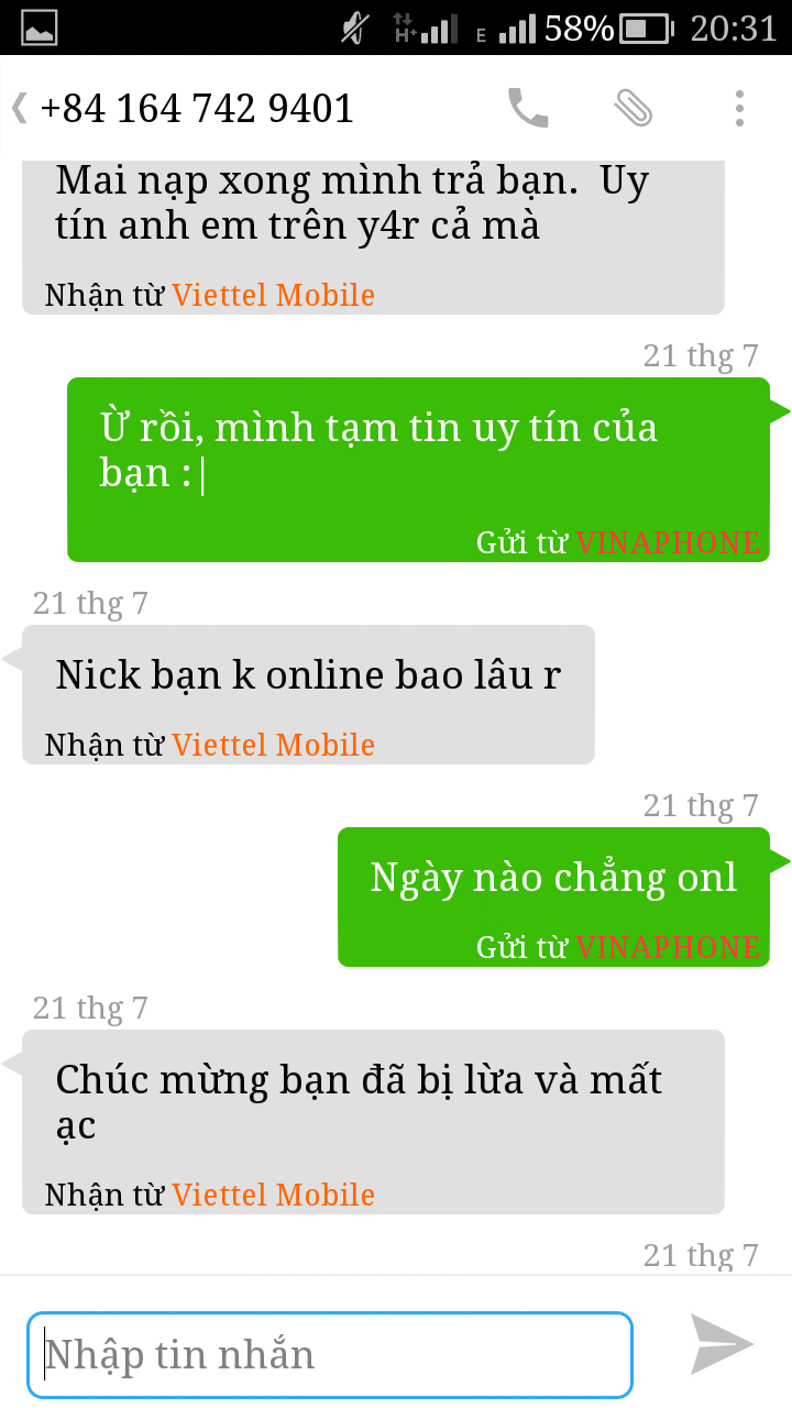 Thành viên lừa đảo trong forum