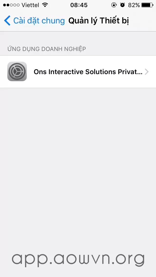 Vào Cài đặt > Cài Đặt Chung > Quản Lí Thiết Bị > Chọn Ons Interactive Solutions