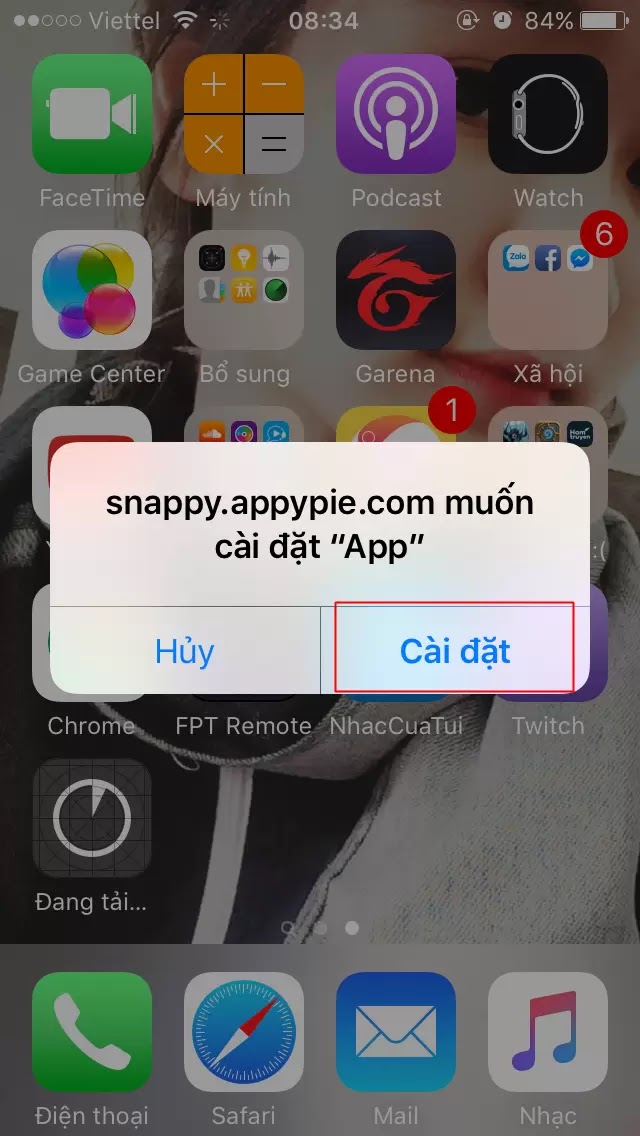 Dùng Safari > Vào https://goo.gl/Ufg4PM để tải app , chả hiểu sao link này không chèn được > Launch > Cài Đặt