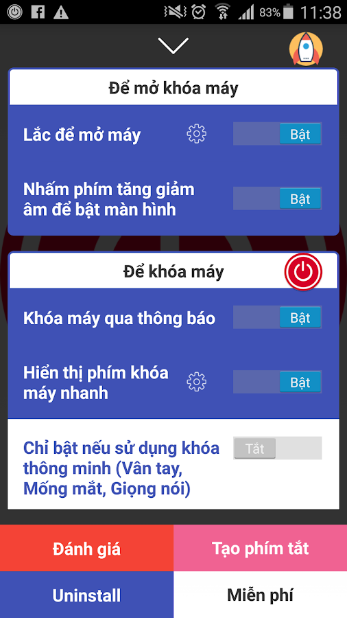 Trình khóa máy thông qua câu thông báo. Tuyệt vời hơn bạn có thể khóa máy ngay ở màn hình khóa. Thêm phím tắt ngay trên màn hình để việc khóa máy trở nên pro hơn. Wiget và Laucher shortcut, thêm các phím tắt giúp bạn khóa máy ở bất kỳ đâu. Hoặc bạn có thể thiết lập để mở máy khi bạn mở ứng dụng. Hỗ trợ cả Android 6.0+