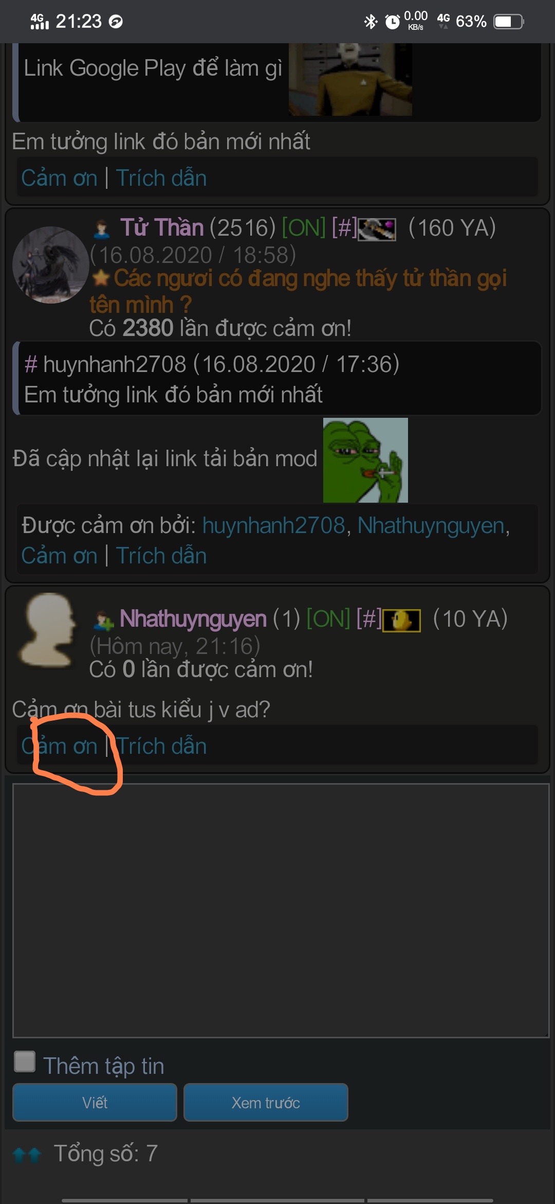 Phía dưới bài viết đầu topic #1 của tôi có 1 nút cảm ơn