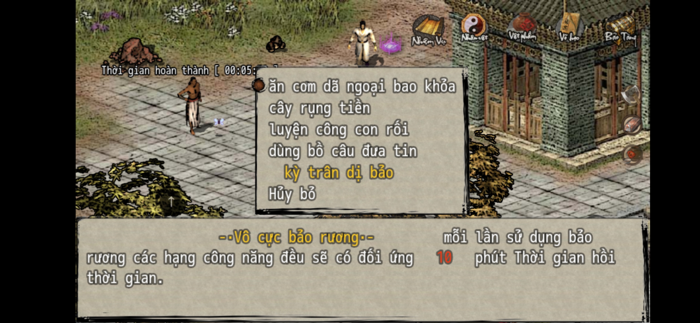 Ở cái bảng trong chùa có dã cẩu quyền ấn cái bảng ( chú ý phải làm mới có túi xuất hiện: nói chuyện 100 lần với tay mao 18 ở trên khách sạn tầng 2 nó mở map dọa ma có phục trang thiên kim ở dưới chỗ lần đầu đập đá chém cây sau thôn ) thì cái túi xuất hiện mở nó ra cái vòng có thuộc tính giống chúc phúc + mấy đá khảm cam và vô cực rương ( khá vô dụng nên không lấy cũng chả sao.mà được cái chức năng đánh dấu kỳ kỳ ở mọi nơi cho ai lười xài khinh công) +2 tự nhiên nó thêm cái tăng lượt kỳ ngộ cố định khi qua ngày không biết có liên quan tới cái túi k nữa.