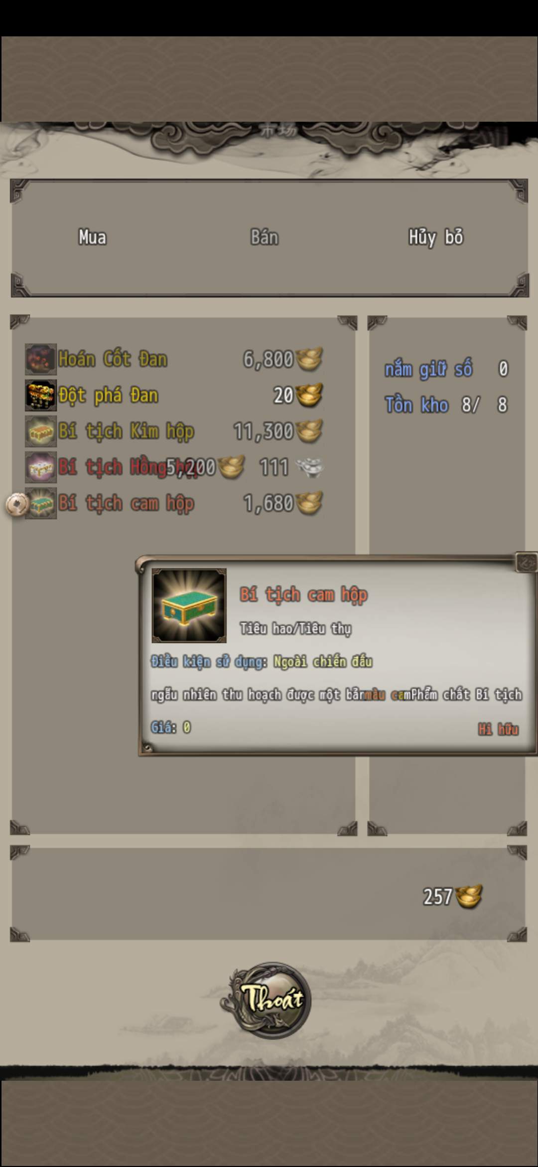 Ủa ko học chưởng max luôn đi a, còn vụ càn quét thì hên xui mới có rươngAnh sợ mìn nên ko học max, vô map xuất hiện bảng thông báo nhưng nó ko hiện càn quét cho mình nhấn, mà tầm này xóa game luôn cho rồi, càng về sau càng thấy ko còn nhàn hiệp nữa, em tới map nào rồi