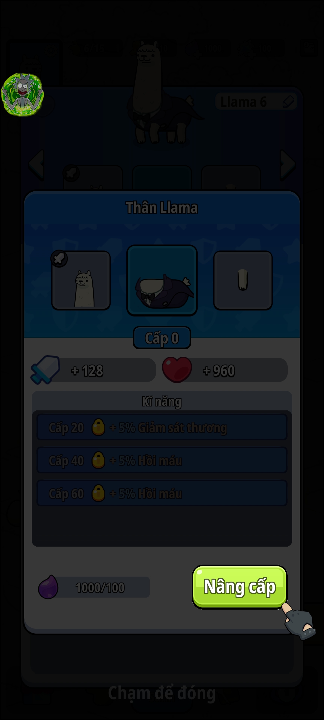 Hướng dẫn sử dụng.bật mod lên rồi nâng cấp Llama mod sẽ hoạt động