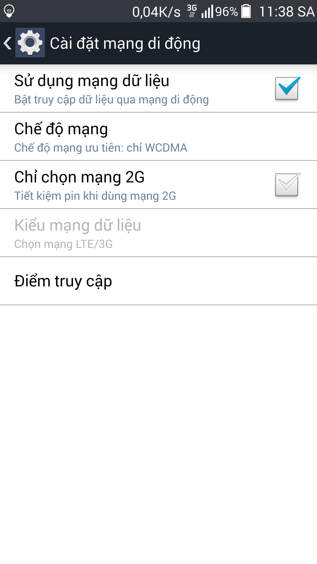 Mấy bác mấy anh mấy chú mấy dì mấy thím mấy mợ cho em hỏi về cái 3g xíu Mạng Vina Đăng ký loại tháng được 4g tốc độ cao nhưng thật sự thì chả cao tý nào cứ 0,14k/s 0,55k/s 0,5k/s thường xuyên 0,00k/s cao nhất chỉ 25,9k/s thôi mà rất hiếm@@ vậy mấy bác có cách này giúp cải thiện không giúp em phát.