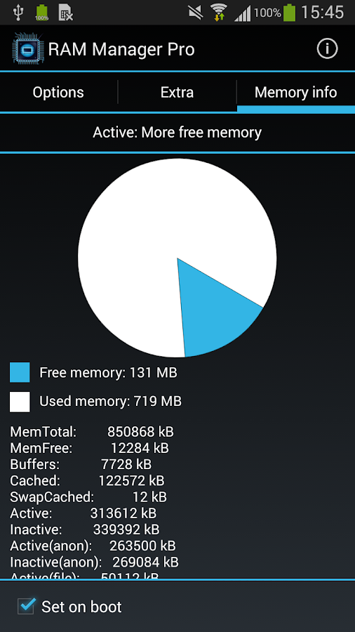 Sau mỗi lần chọn xóa tất cả là Ram trống trên 150MB.