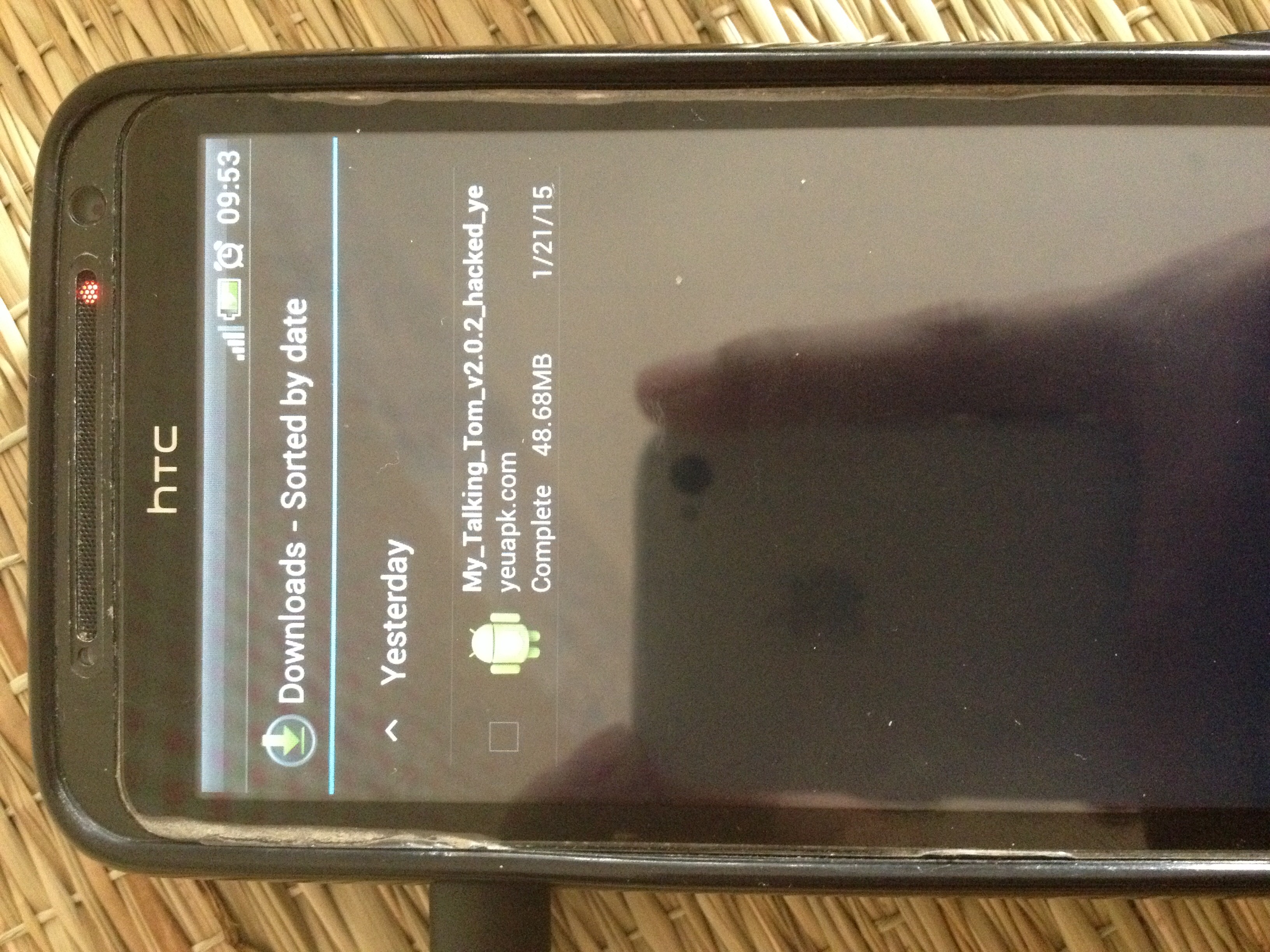 vào ch play. tìm và cài đặt es duyệt tập tin đi. xong rồi mình nói tiếp. cái mà bạn tải về đang là định dạng nén. cần giải nén nó ra.