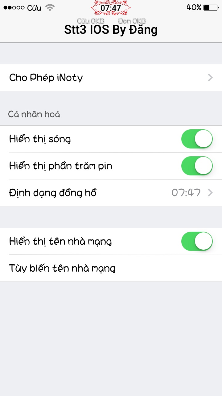Còn app riêng của Cừu thì xài ok mặc dù ko đổi màu theo app.