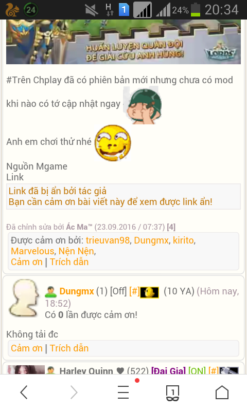#Trên Chplay đã có phiên bản mới nhưng chưa có mod khi nào có tớ cập nhật ngay