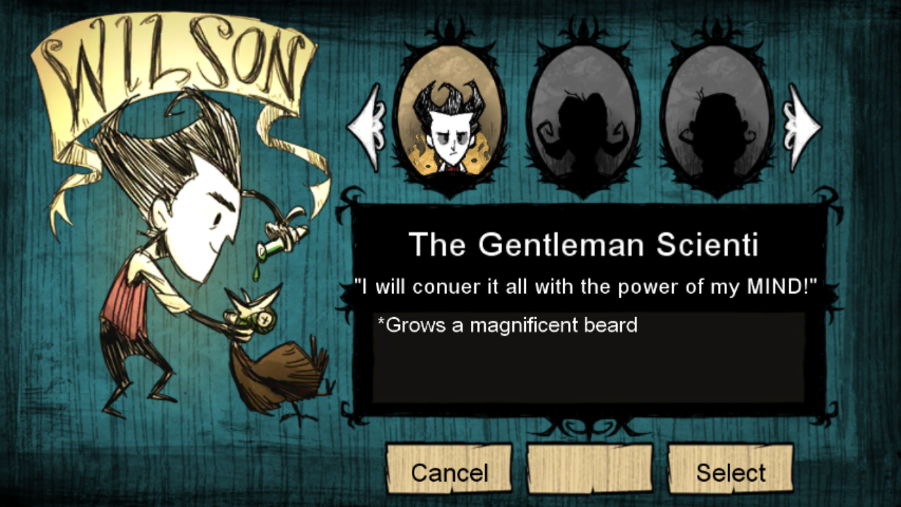 -Giới thiệu: Don't Starve (tạm dịch Đừng Chết Đói) là một game sinh tồn tưởng tượng thể loại Roguelike phát hành bởi Klei Entertainment. Don't Starve thách thức người chơi sống sót trong một vùng đất Không biết sao cái mod Unlock all nhân vật không hoạt động bạn ơi, chỉ free craft và mở all map hoạt động thôi.