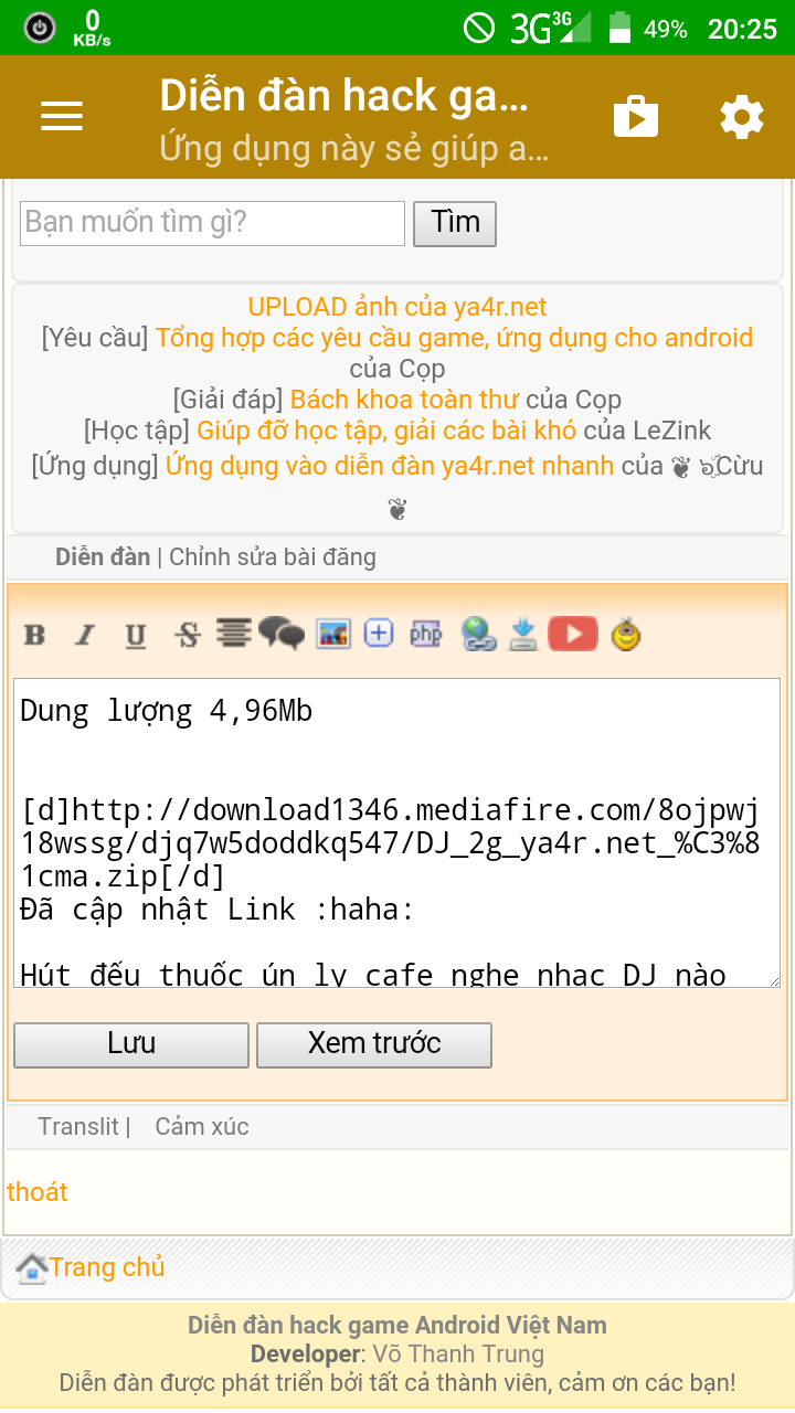 Thím vẫn cứ xài mediafire nhưng ko được để link trực tiếp giống hồi nãy vì sẽ khiến ai xài uc ko tải đc