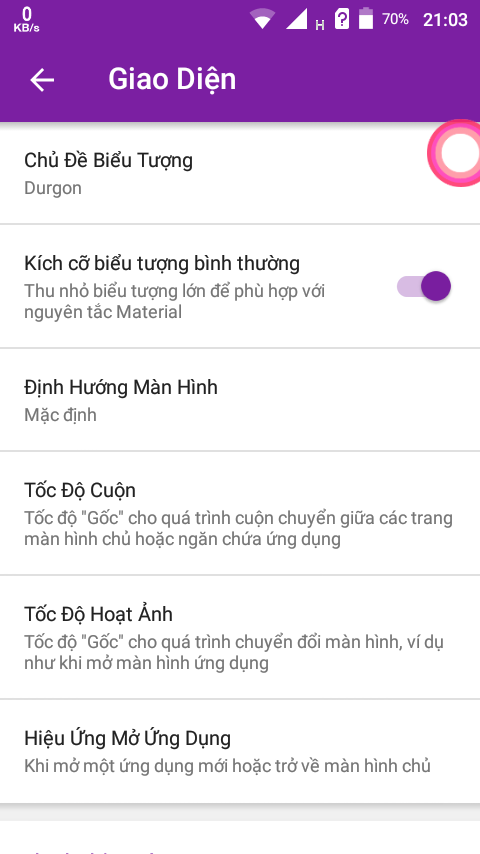 Thiết lập nova -> giao diện > hiệu ứng mở ứng dụngsao màu tím vậy