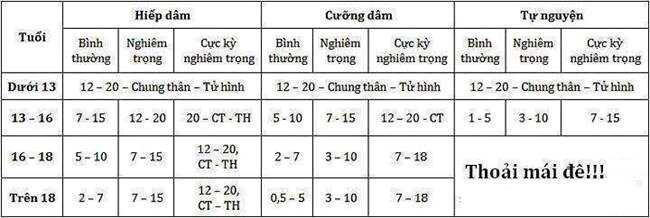 Ý từ 15tủi trở xuốg mà cho thằg tên abcxyz mần thì thằg abcxyz vẫn bị phạt tù treo hoặc tù giam vài năm đến thág