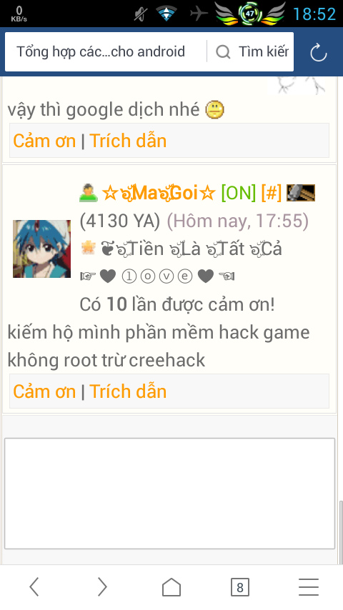 Nếu muốn tán gẫu thì ra lưu bút nhé ko chém gió trong top yêu cầu game nhé