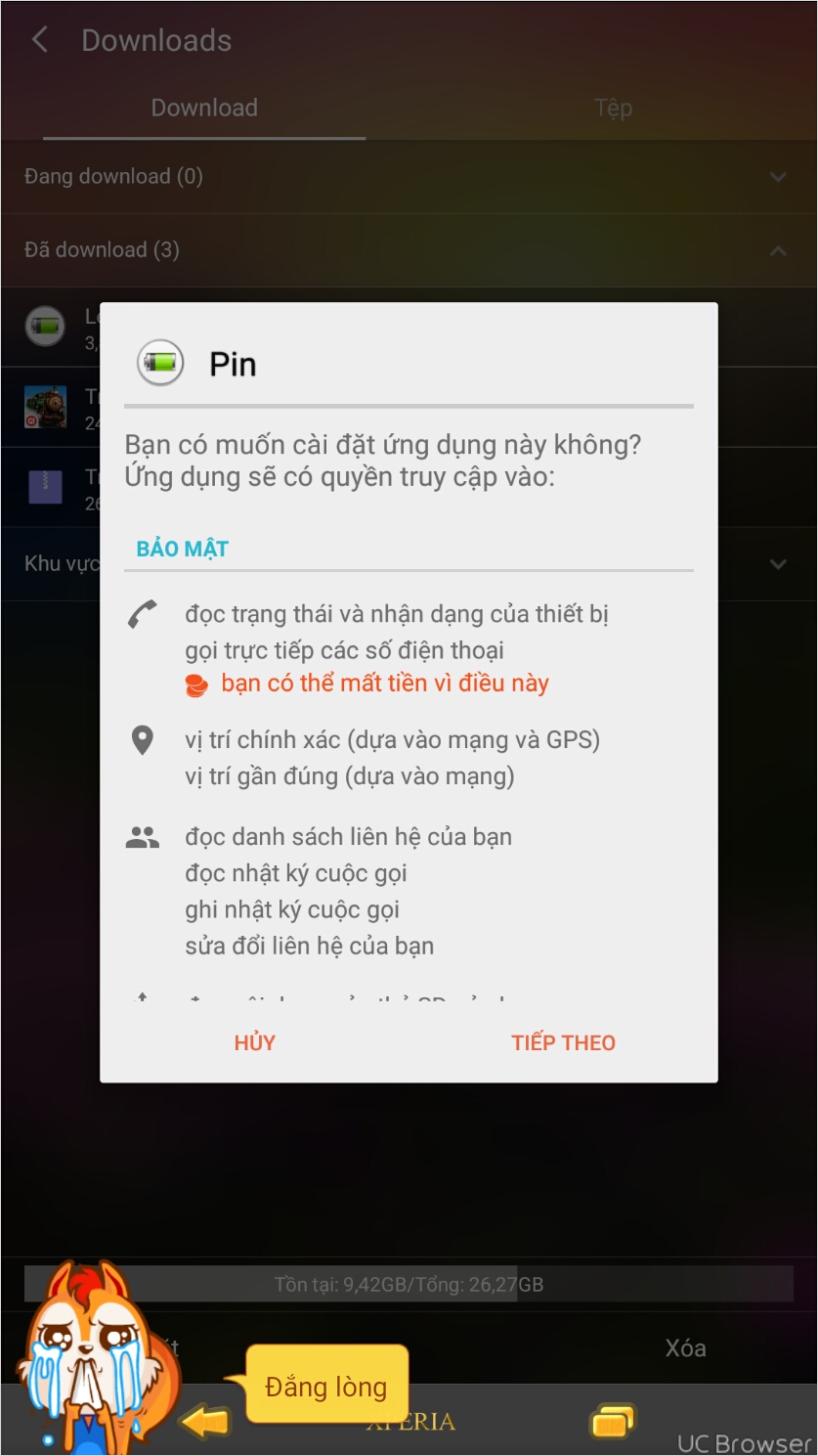 Bị gắn sms màbạn đừng lo nhé. Ko mất tiền đâu. Mình gặp trường hợp này rất nhiều rồi.. nếu mà Có app ko báo như vạy chắc dt mh ko Có app và game nào xài rồi