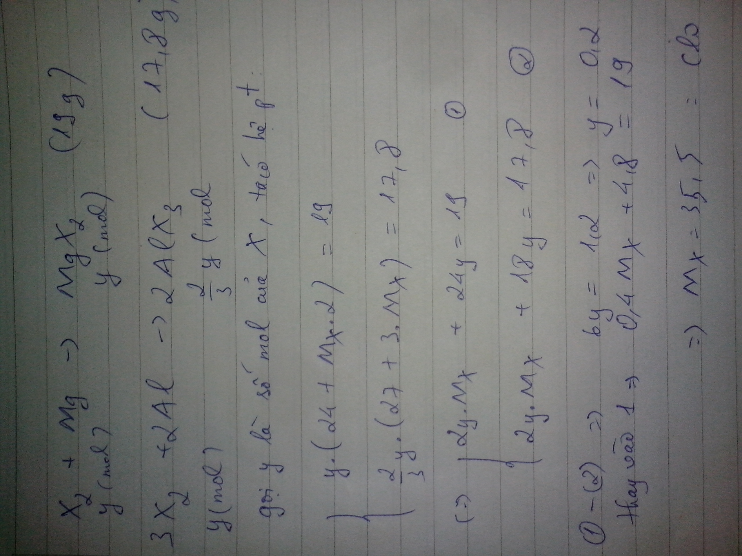 Cũq lấy lượq halogen trên + Al-> 17,8g AlX3. Tìm X?????????X là clo